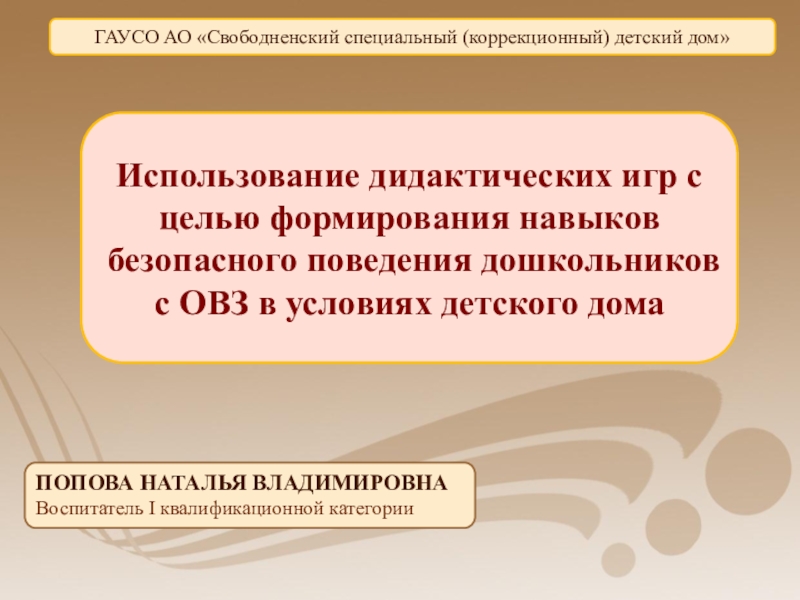 Использование дидактических игр с целью формирования навыков безопасного поведения дошкольников с ОВЗ в условиях детского дома