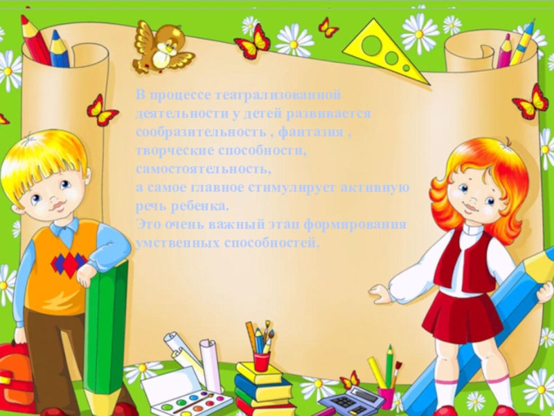 В процессе театрализованной деятельности у детей развивается сообразительность , фантазия