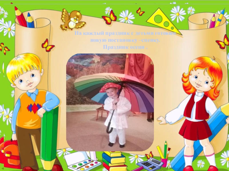 На каждый праздник с детьми готовим новую постановку –сценку.