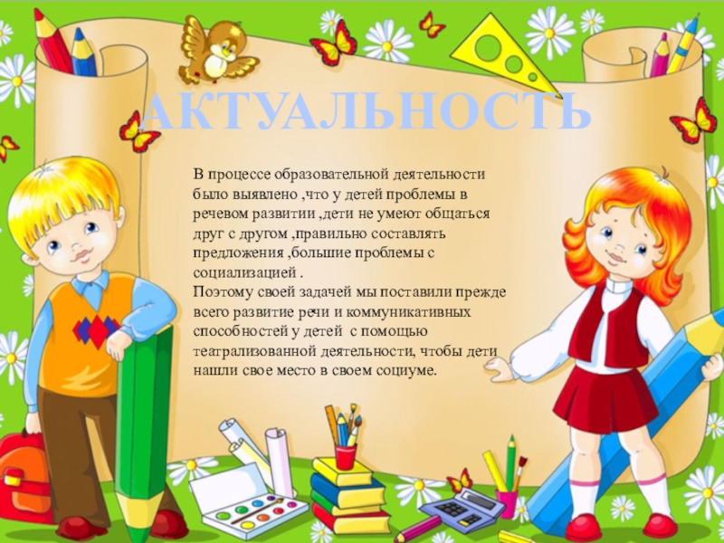 Поэтому своей задачей мы поставили прежде всего развитие речи и коммуникативных способностей у детей с помощью театрализованной деятельности, чтобы дети нашли свое место в своем социуме.