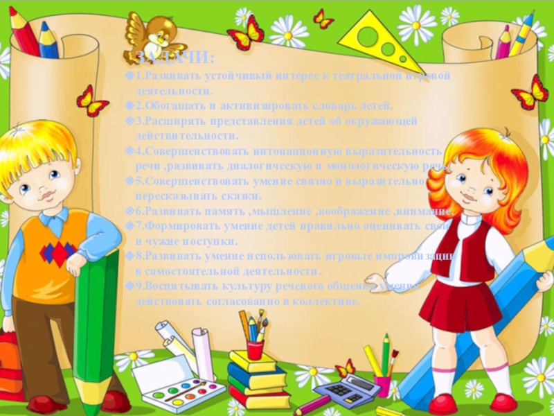 1.Развивать устойчивый интерес к театральной игровой деятельности.