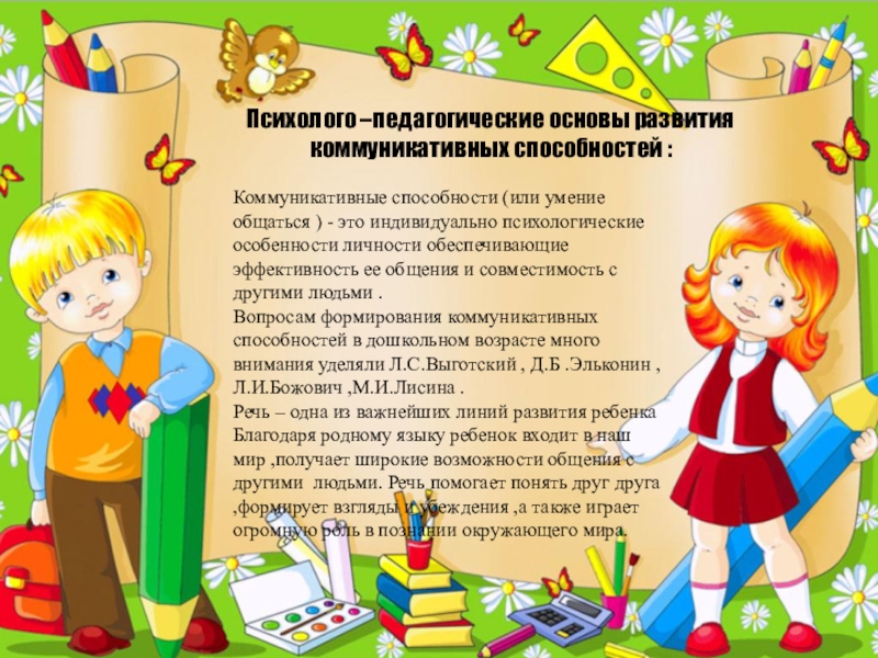 Вопросам формирования коммуникативных способностей в дошкольном возрасте много внимания уделяли Л.С.Выготский , Д.Б .Эльконин ,Л.И.Божович ,М.И.Лисина .