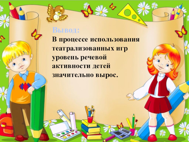 Если планомерно ,систематически использовать в образовательном процессе театрализованные игры ,то уровень