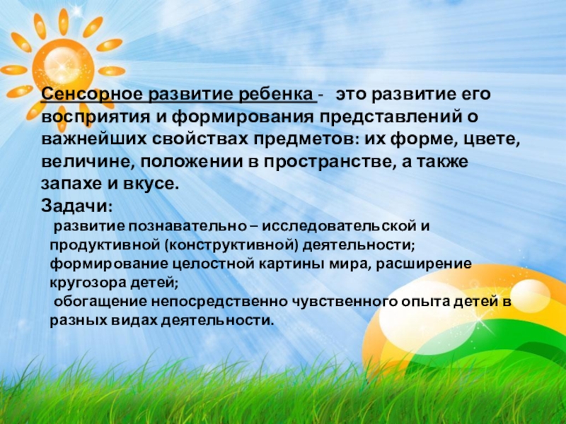 обогащение непосредственно чувственного опыта детей в разных видах деятельности.