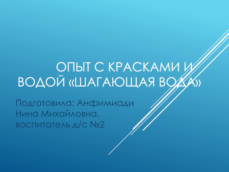 Подготовила: Анфимиади Нина Михайловна, воспитатель д/с №2