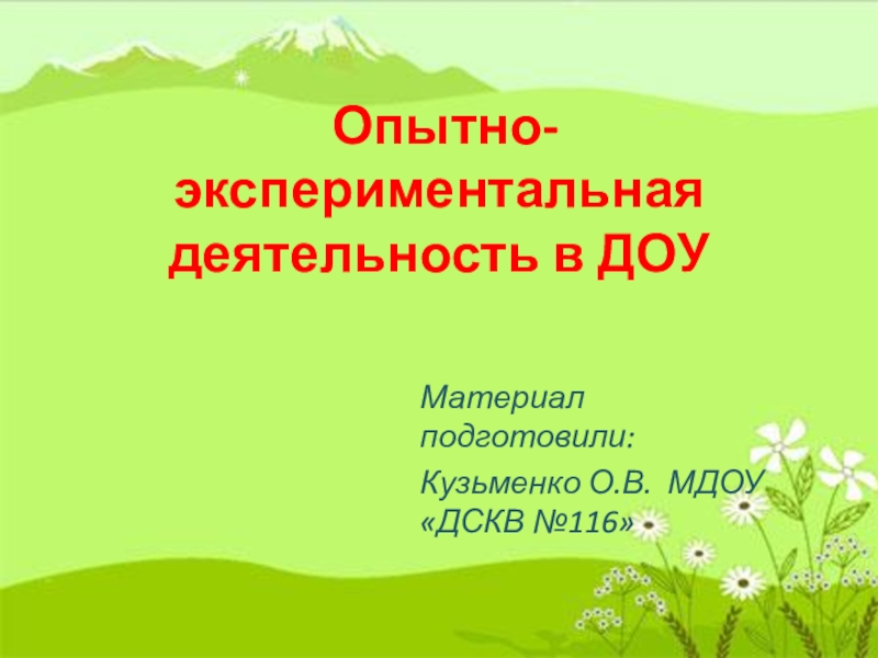 Слайд 1 Опытно-экспериментальная деятельность в ДОУ