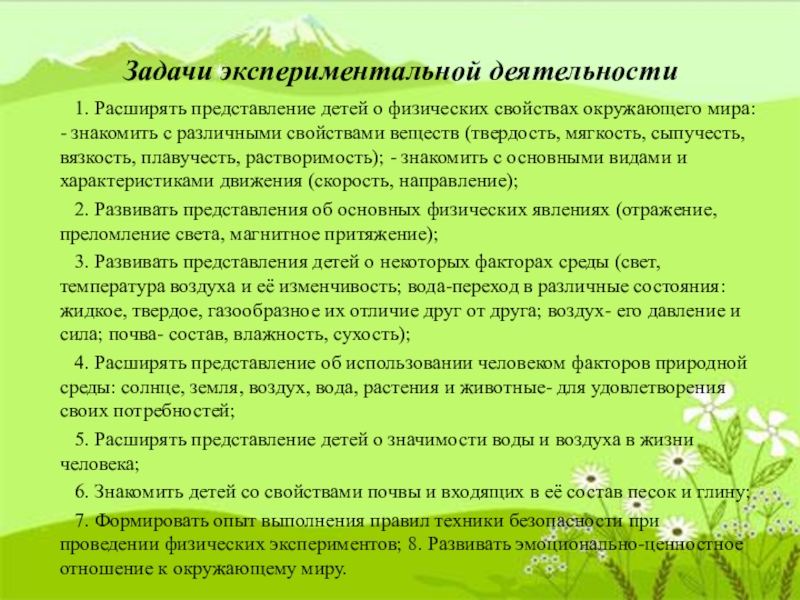 7. Формировать опыт выполнения правил техники безопасности при проведении физических экспериментов; 8. Развивать эмоционально-ценностное отношение к окружающему миру.
