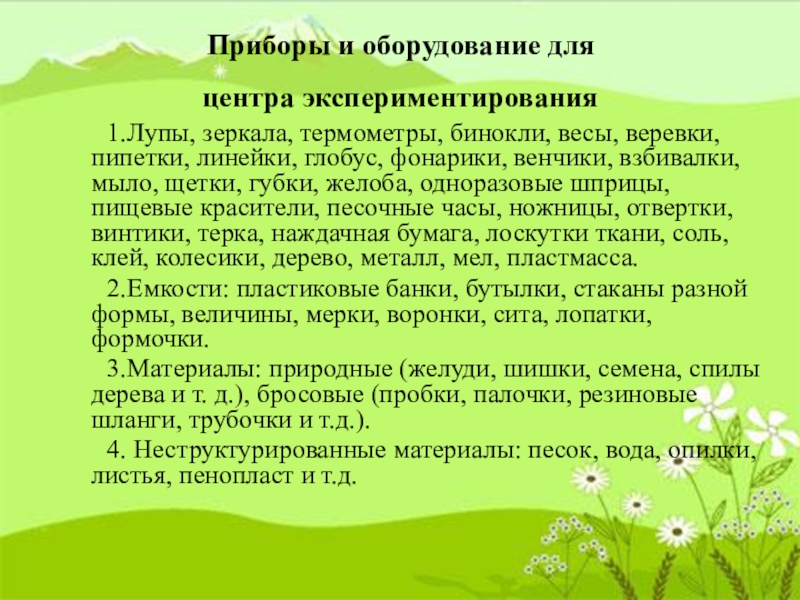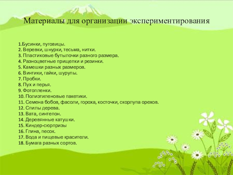 Слайд 10Материалы для организации экспериментирования