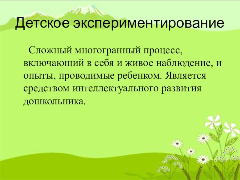 и живое наблюдение, и опыты, проводимые ребенком. Является средством интеллектуального развития дошкольника.