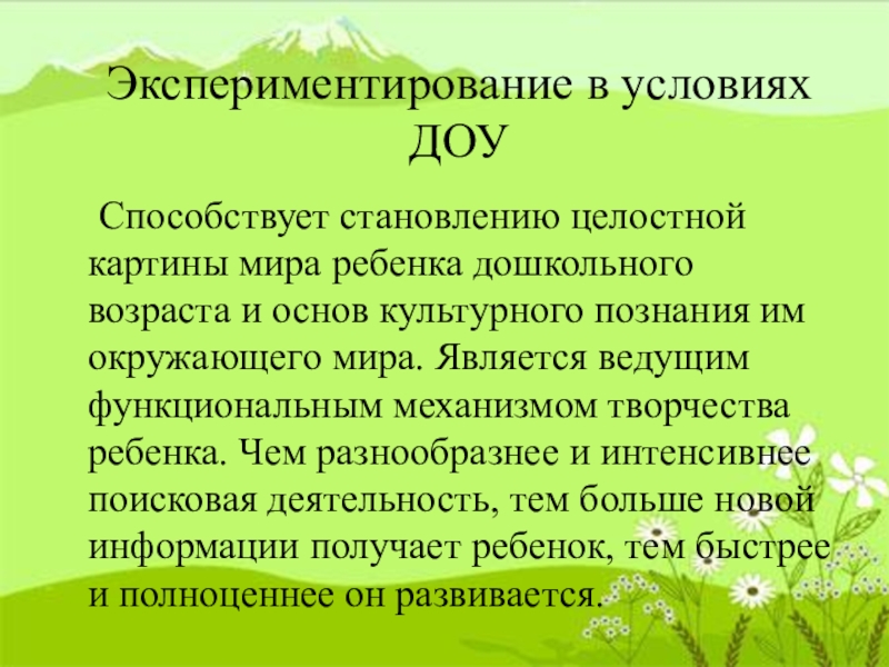 Экспериментирование в условиях ДОУ