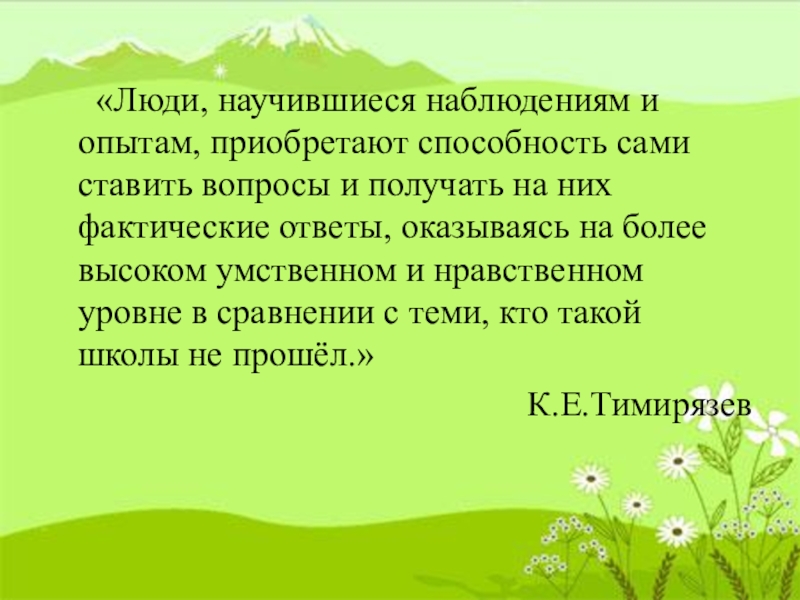 Слайд 3 «Люди, научившиеся наблюдениям и опытам, приобретают способность сами
