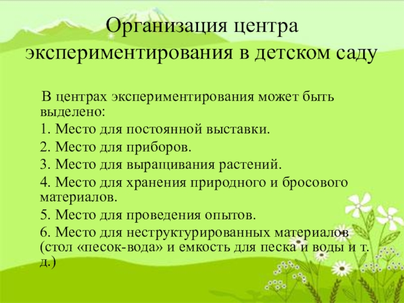 Слайд 8Организация центра экспериментирования в детском саду