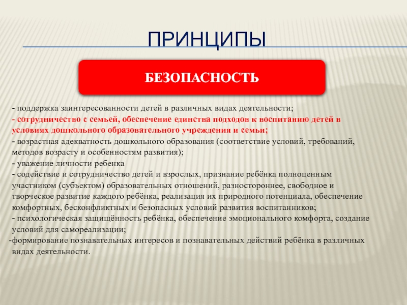 - психологическая защищённость ребёнка, обеспечение эмоционального комфорта, создание условий для самореализации;