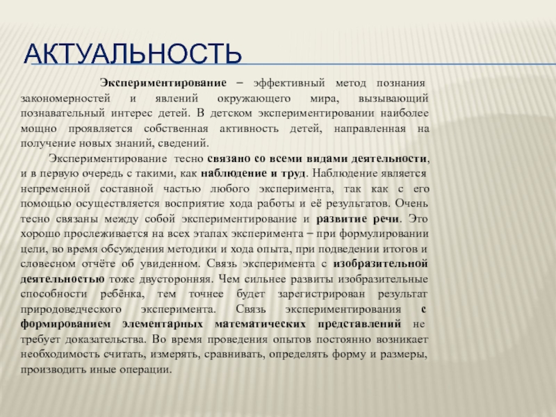 явлений окружающего мира, вызывающий познавательный интерес детей. В детском экспериментировании наиболее мощно проявляется собственная активность детей, направленная на получение новых знаний, сведений.
