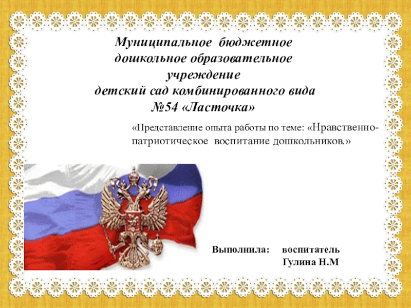 «Представление опыта работы по теме: «Нравственно-патриотическое воспитание дошкольников.»