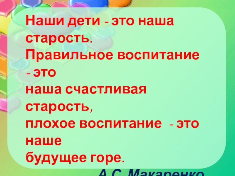 Наши дети - это наша старость. Правильное воспитание­ - это наша счастливая старость, плохое воспитание ­ -