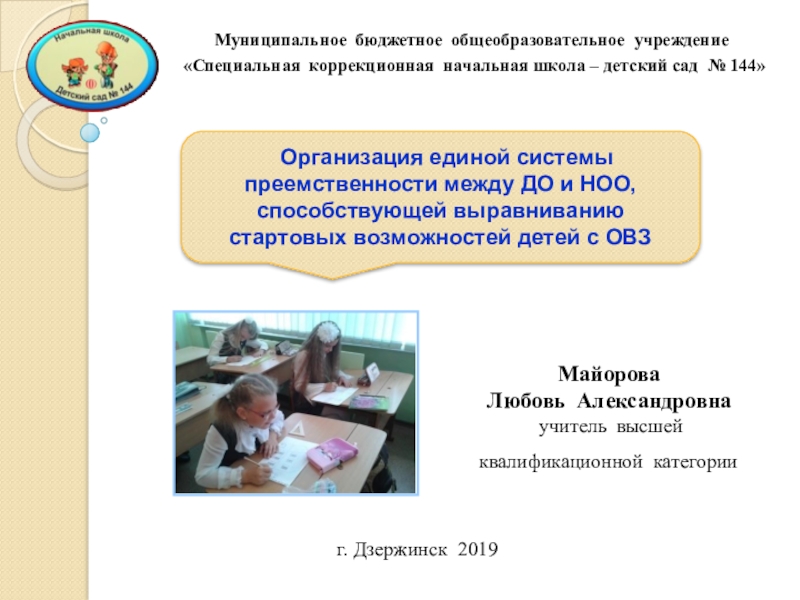 «Специальная коррекционная начальная школа – детский сад № 144»