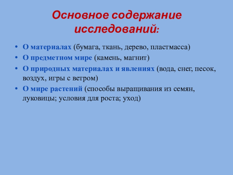 Основное содержание исследований: