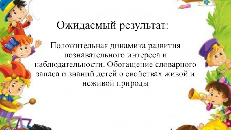 Ожидаемый результат:Положительная динамика развития познавательного интереса и наблюдательности. Обогащение словарного запаса и знаний детей о свойствах живой
