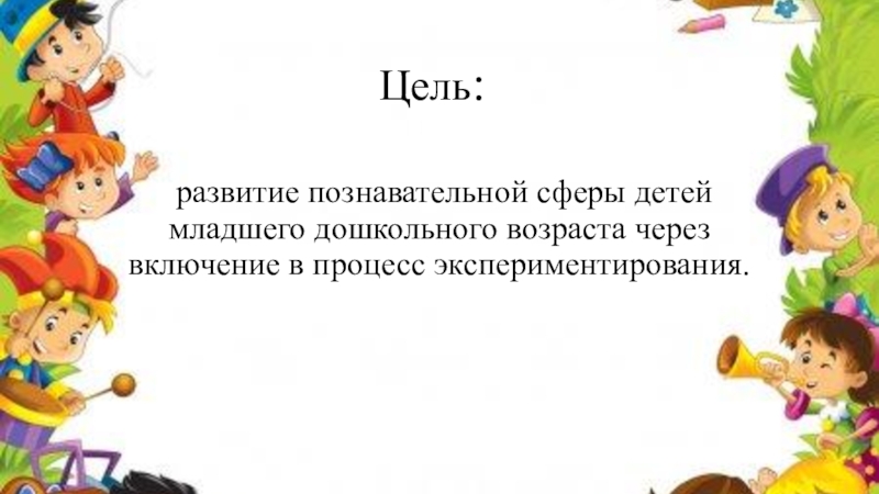 Цель: развитие познавательной сферы детей младшего дошкольного возраста через включение в процесс экспериментирования.