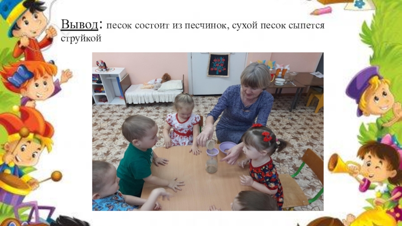 Слайд 8Вывод: песок состоит из песчинок, сухой песок сыпется струйкой