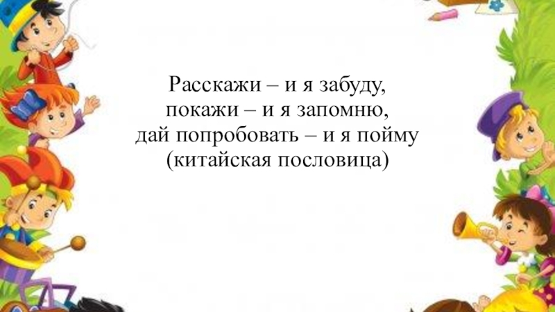 Слайд 24Расскажи – и я забуду, покажи – и я запомню, дай