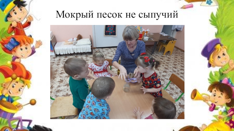 Слайд 10Экспериментирование с мокрым песком: задача: сравнить свойства сухого и мокрого песка