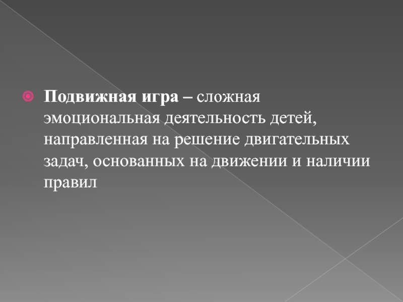 Слайд 2Подвижная игра – сложная эмоциональная деятельность детей, направленная на решение двигательных