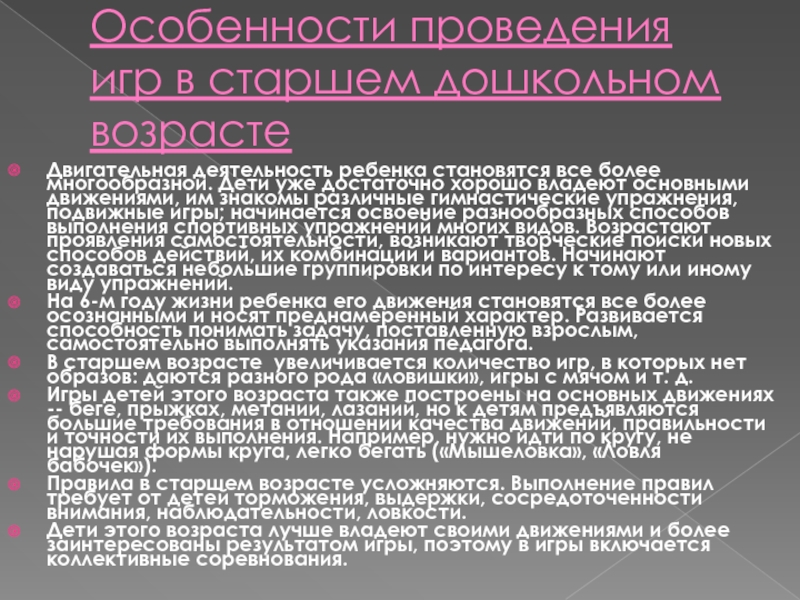 Слайд 7Особенности проведения игр в старшем дошкольном возрасте