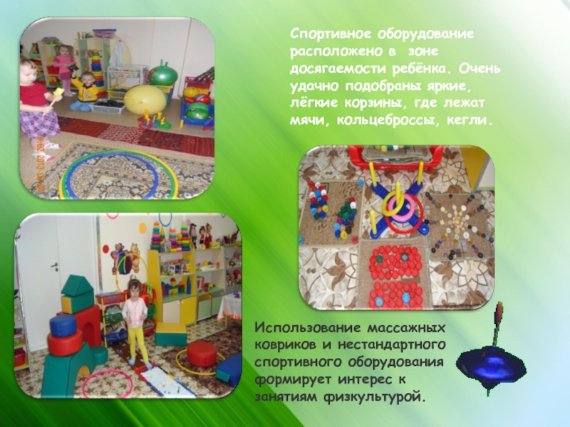Использование массажных ковриков и нестандартного спортивного оборудования формирует интерес к занятиям физкультурой.