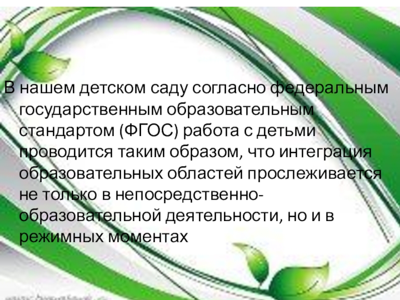 с детьми проводится таким образом, что интеграция образовательных областей прослеживается не только в непосредственно-образовательной деятельности, но и в режимных моментах