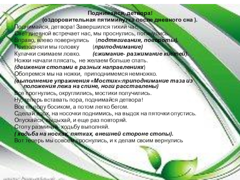 Свет дневной встречает нас, мы проснулись, потянулись.