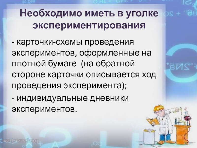 Слайд 17Необходимо иметь в уголке экспериментирования