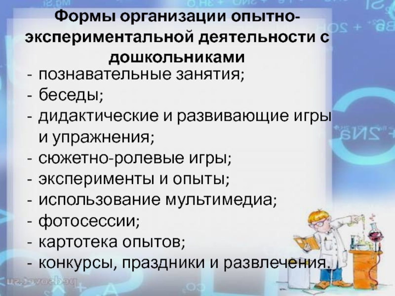 Слайд 20Формы организации опытно-экспериментальной деятельности с дошкольниками