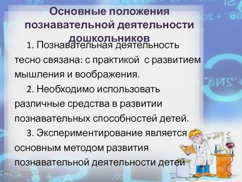 Слайд 7Основные положения познавательной деятельности дошкольников