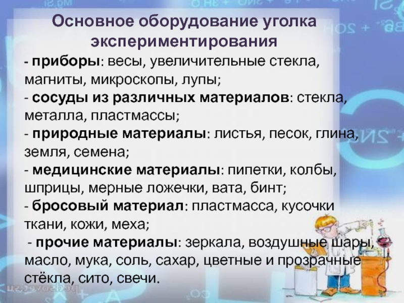 Основное оборудование уголка экспериментирования