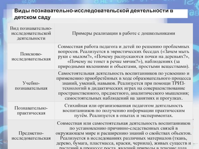 Слайд 5Виды познавательно-исследовательской деятельности в детском саду