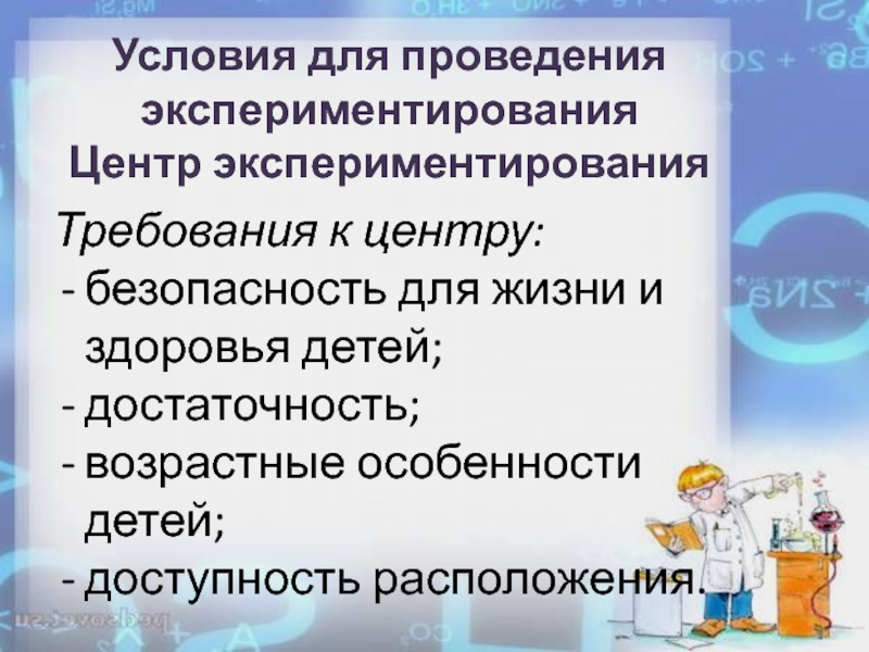 Слайд 14Условия для проведения экспериментирования