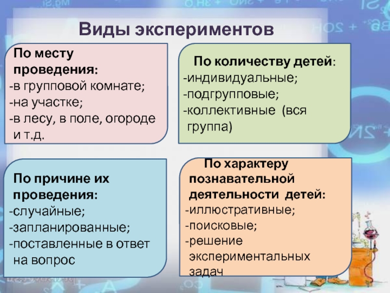 Слайд 13Виды экспериментов