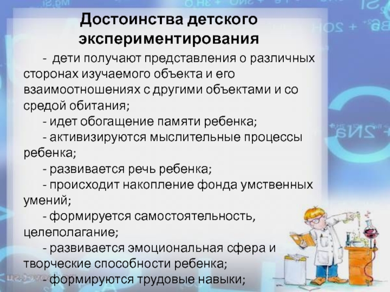 Слайд 11Достоинства детского экспериментирования