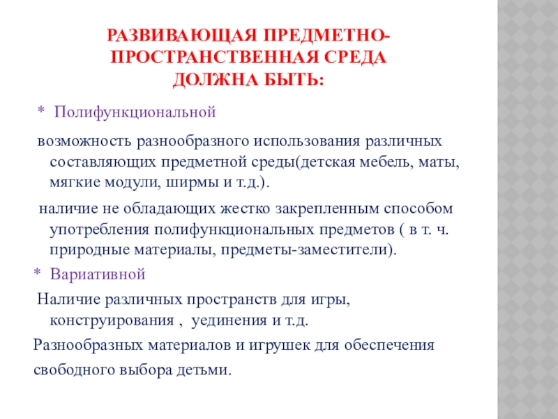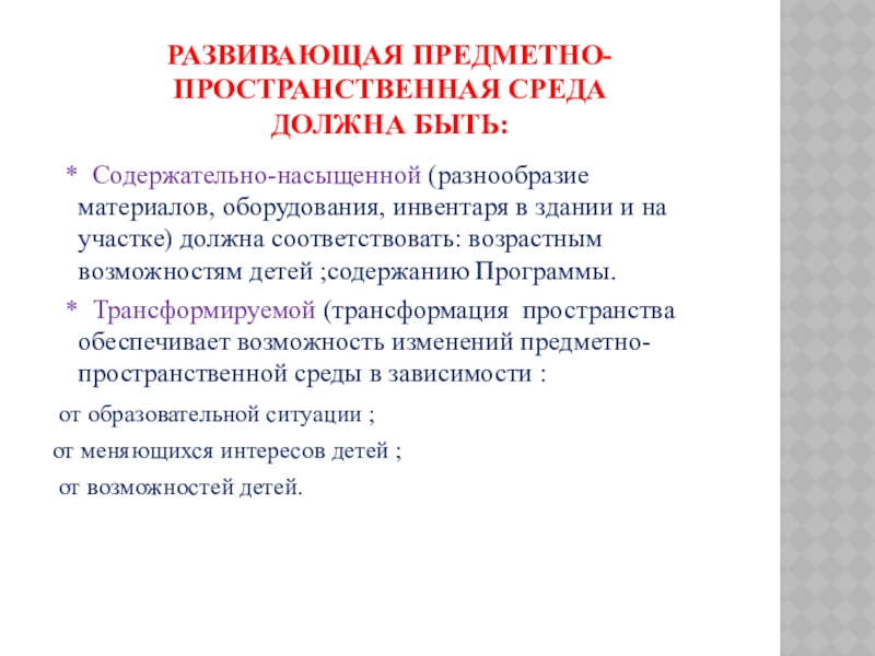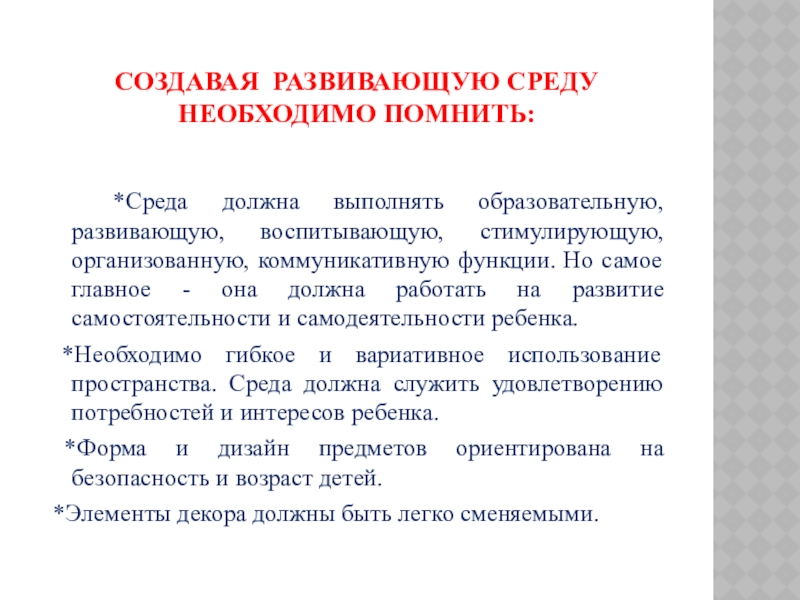 *Среда должна выполнять образовательную, развивающую, воспитывающую,