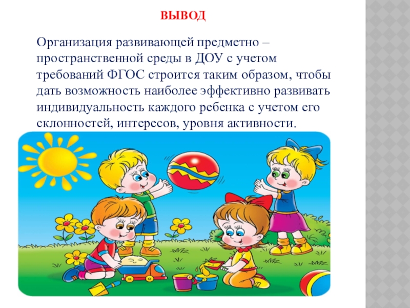 учетом требований ФГОС строится таким образом, чтобы дать возможность наиболее эффективно развивать индивидуальность каждого ребенка с учетом его склонностей, интересов, уровня активности.