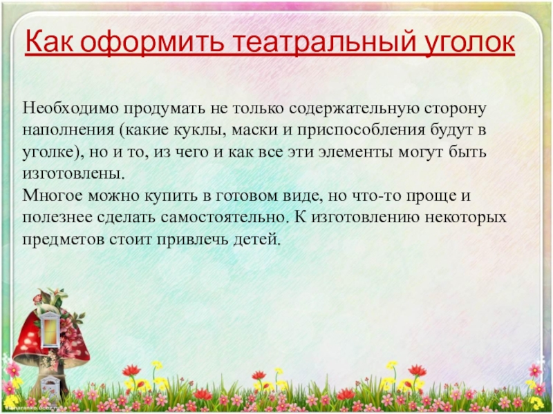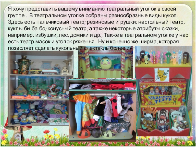 Слайд 10Я хочу представить вашему вниманию театральный уголок в своей группе .