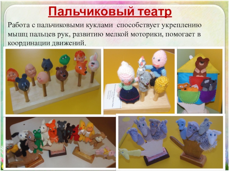 Работа с пальчиковыми куклами способствует укреплению мышц пальцев рук, развитию