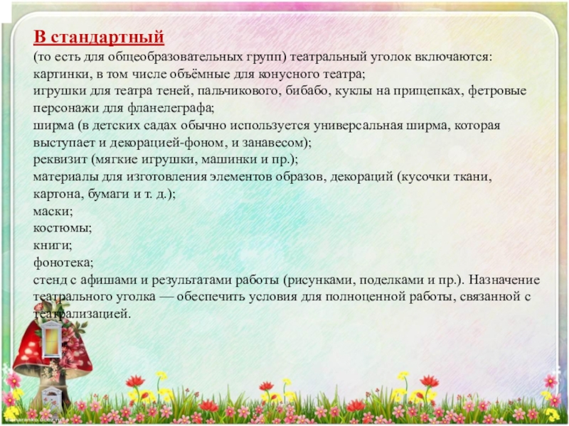 (то есть для общеобразовательных групп) театральный уголок включаются: картинки,