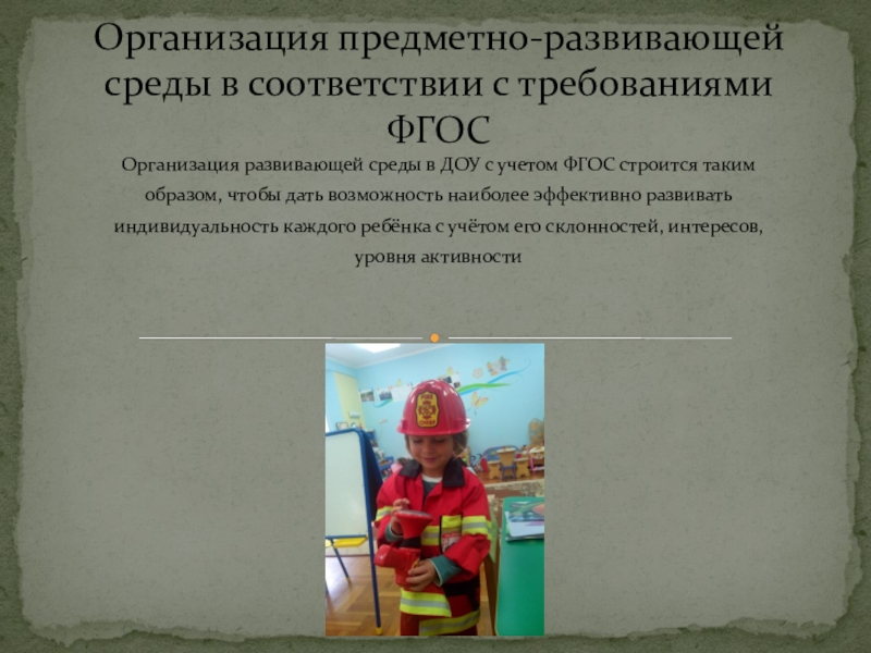 Организация предметно-развивающей среды в соответствии с требованиями ФГОС