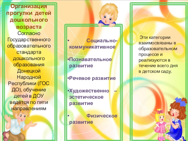 Эти категории взаимосвязаны в образовательном процессе и реализуются в течение всего дня в детском саду.