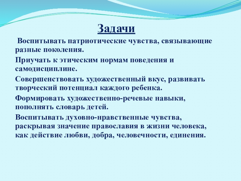 Воспитывать духовно-нравственные чувства, раскрывая значение православия в жизни человека, как действие любви, добра, человечности, единения.