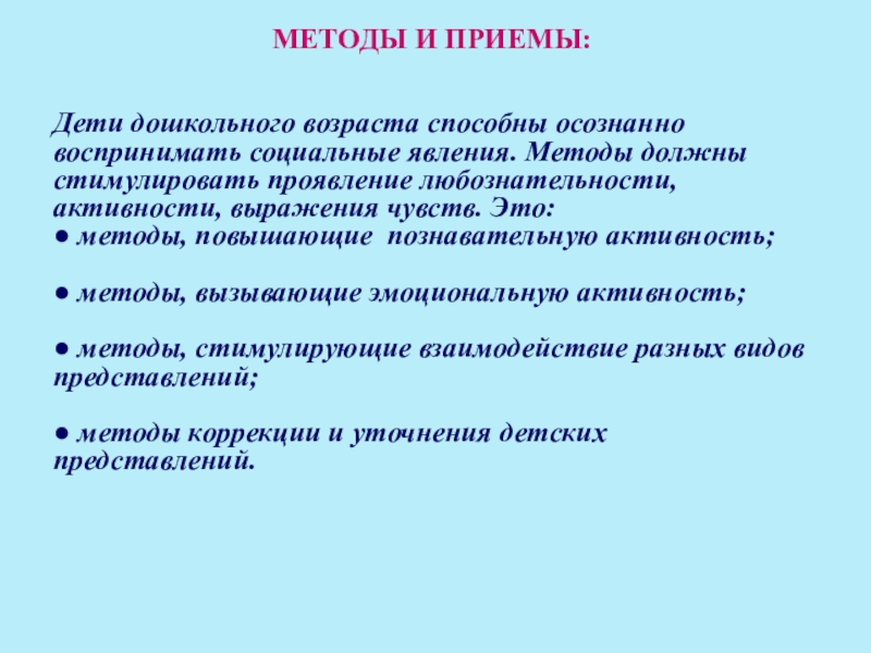 Дети дошкольного возраста способны осознанно воспринимать социальные явления. Методы