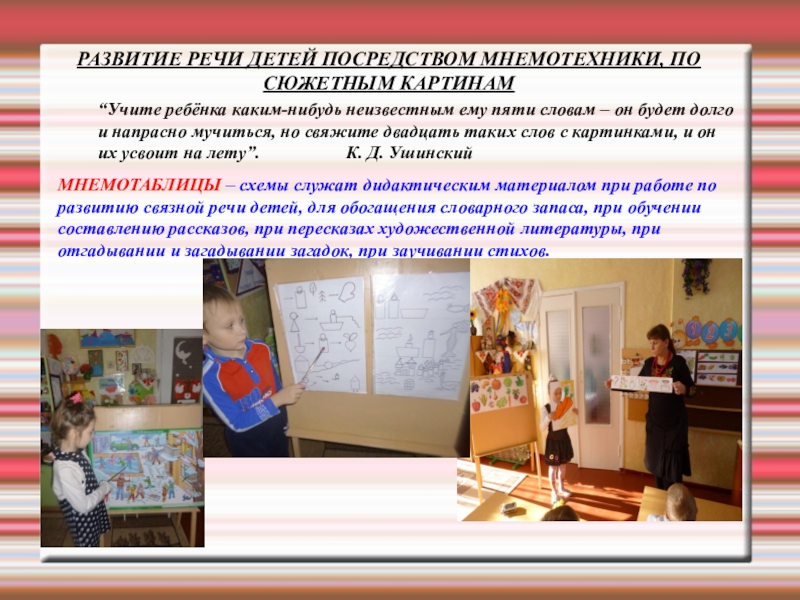 МНЕМОТАБЛИЦЫ – схемы служат дидактическим материалом при работе по развитию связной речи детей, для обогащения словарного запаса, при обучении составлению рассказов, при пересказах художественной литературы, при отгадывании и загадывании загадок, при заучивании стихов.